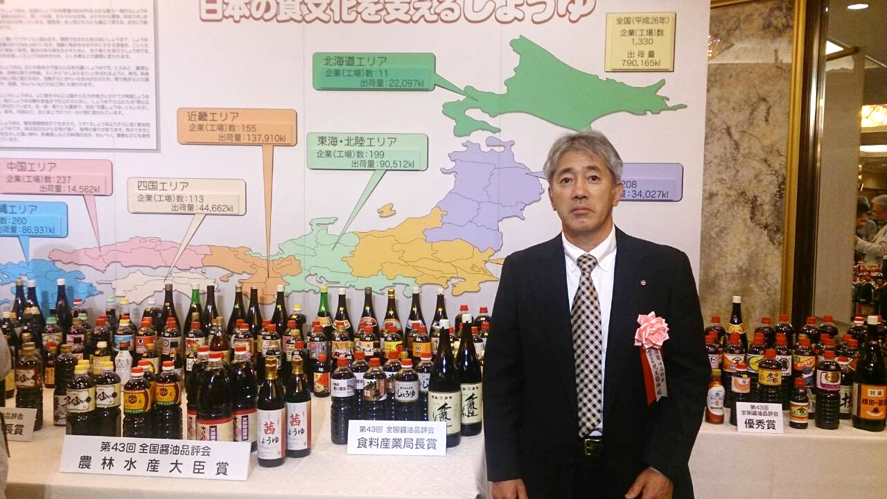 「醤油の日」を記念して10月1日に開催された「醤油の日の集い」(東京・ロイヤルパークホテル)において、「第43回全国醤油品評会」(主催:日本醤油協会(会長濱口道雄)、協力:一般財団法人日本醤油技術センター、後援:農林水産省)の表彰式が開催され、「農林水産大臣賞」「食料産業局長賞」「優秀賞」の各賞の発表・表彰が行われました。